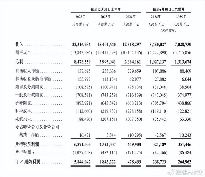 财务方面,报告期内营业收入分别为2022年223.17亿元、2023年154.05亿元、2024年125.18亿元,2025年上半年70.29亿元。相应的净利润分别为58.44亿、18.42亿元、4.78亿元和2.65亿元。