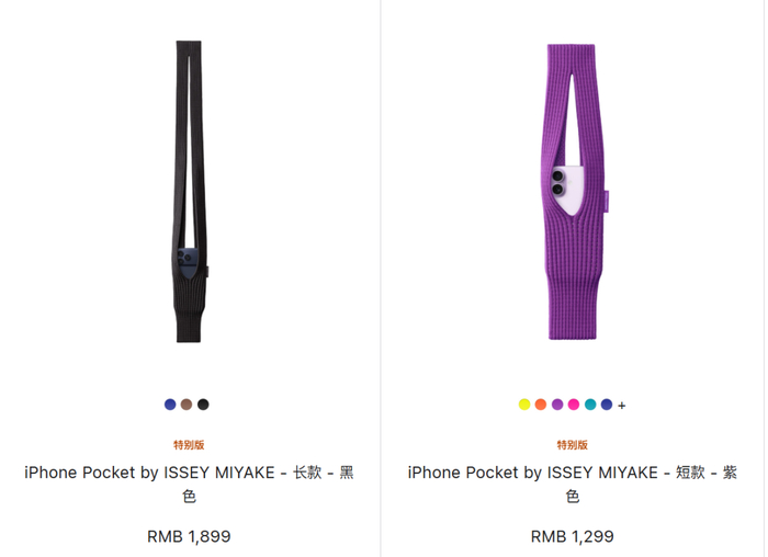 苹果近日在官网上线了与知名时尚品牌三宅一生共同推出的特别版配件iPhone Pocket,用于放置苹果手机。