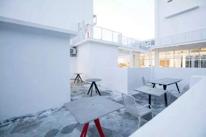 第一幢纯白的房子有3层,1楼是贩卖饮料和甜点的 Shuter café。