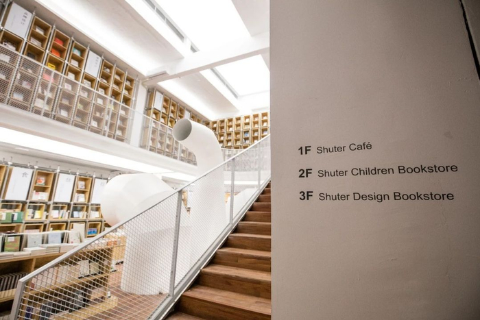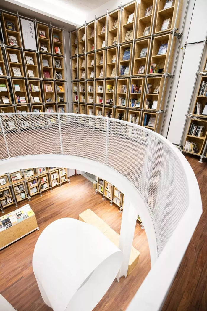 2楼则是半开放式的树德设计书店,包括了生活美学区、儿童绘本区、设计创意区三大区域,墙边的书架按衣、住、行、人、文、社、科将书籍进行分类。