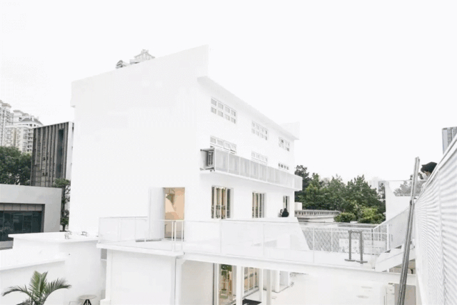 早上,白色的外形与日光结合,呈现出一种干净而通透的舒服感。楼栋之间是互联的,利用连廊嫁接。公共空间采用悬空的设计打造宽敞的社交空间。