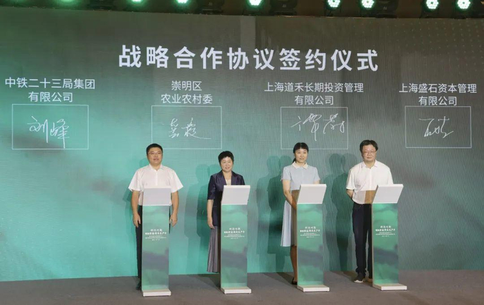 战略合作协议签约仪式道禾长期投资、中铁二十三局、盛石资本与崇明区农业农村委现场签约成立“长三角农业硅谷产业基金”,亦由民革市委会倡议。该基金旨在合力探索“农业+基金”发展模式,通过成立农业科技产业化基金,为农业科技项目注入资金、资源,助推崇明农业向更高层次发展。