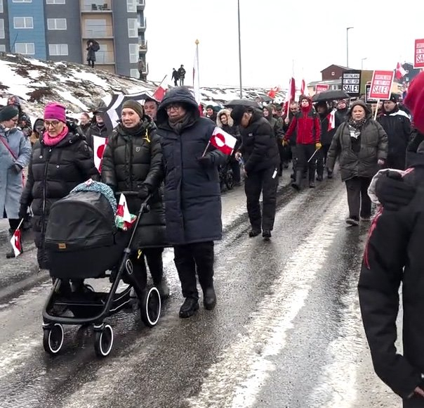 在总人口仅有2万的努克,数千名抗议者走上街头,高举“让美国走开”“格陵兰已经很好”“美国佬,滚回家!”等抗议口号,反对美国政府夺取格陵兰岛的企图。尼尔森也出现在抗议人群中,当他举起格陵兰旗帜时,抗议人群发出欢呼声。