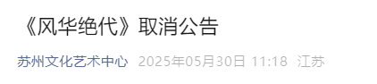 至此,《风华绝代》已公布的全国巡演场次均告取消。