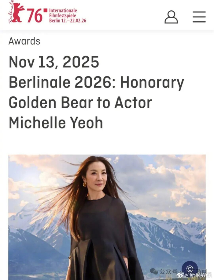 14日,柏林电影节宣布授予杨紫琼终身成就奖荣誉金熊,将于2026年2月12日在下一届柏林开幕之夜颁出。据悉,杨紫琼曾担任1999年柏林电影节评委,《卧虎藏龙》《瞬息全宇宙》等代表作也多次去到柏林。