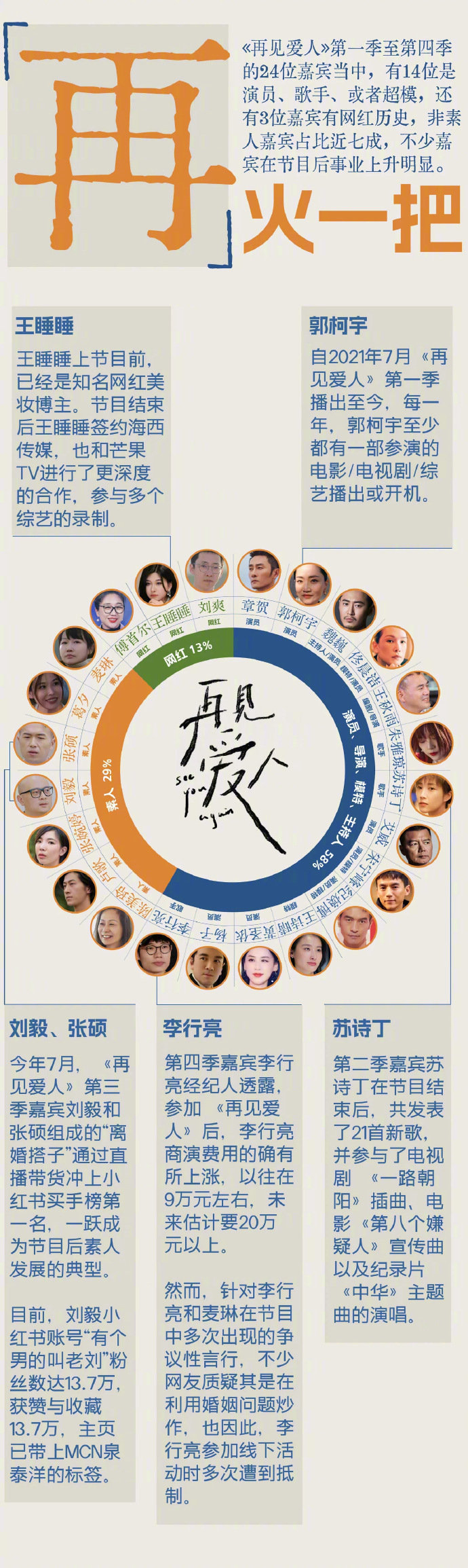 除了节目本身从综艺拓展到电影外,往届不少嘉宾也借此翻红或开启事业第二春,接广带货逐渐成为节目外的发展典型。