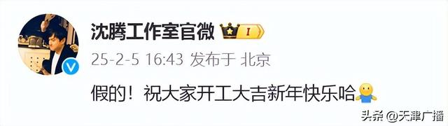 沈腾工作室发回应辟谣:“假的!祝大家开工大吉新年快乐哈。”