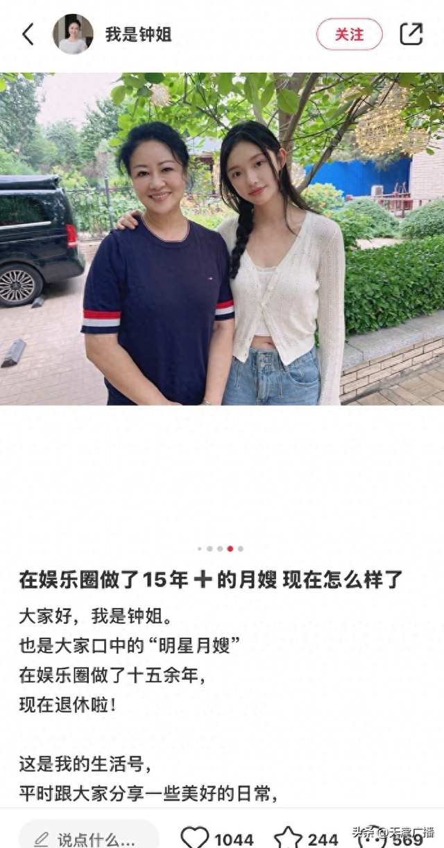 近日,一位名为“我是钟姐”的账号在社交媒体上晒出与知名女星林允的合照,并配文:“在娱乐圈做了超15年的月嫂,我现在怎么样了。”该贴中还有该月嫂与其他明星的合影。