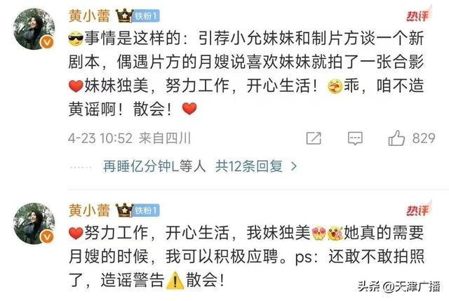 针对此事,林允第一时间辟谣,称已走法律程序,黄小蕾在其回应下连发两贴表示支持。
