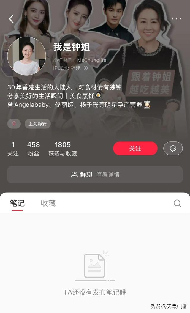 “我是钟姐”的账号拥有458粉丝,其个人简介写道:“曾(参与)Angelababy、佟丽娅、杨子姗等明星孕产营养”。