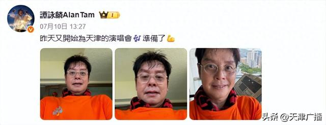 昨天(7月10日),谭咏麟社交媒体账号@譚詠麟AlanTam 发布健身的动态照片,配文:開始為天津的演唱會準備了。