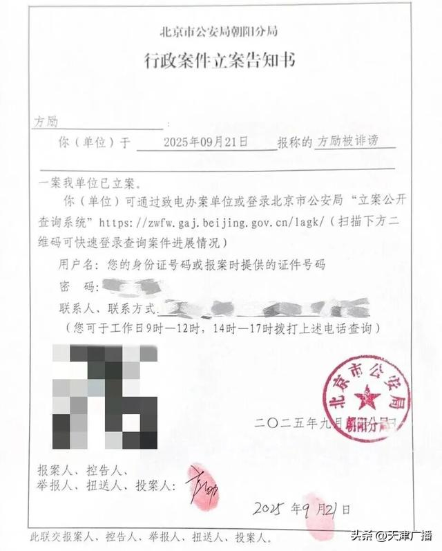 9月21日,劳雷影业通过官方账号发文称,针对日前网络上对劳雷影业制片人、导演方励的造谣诽谤,该公司已逐一取证并固定证据向北京警方正式报案,并将逐一进入司法程序维护当事人的合法权益。同时晒出了方励报警称被诽谤后,北京市公安局朝阳分局出具的《行政案件立案告知书》。