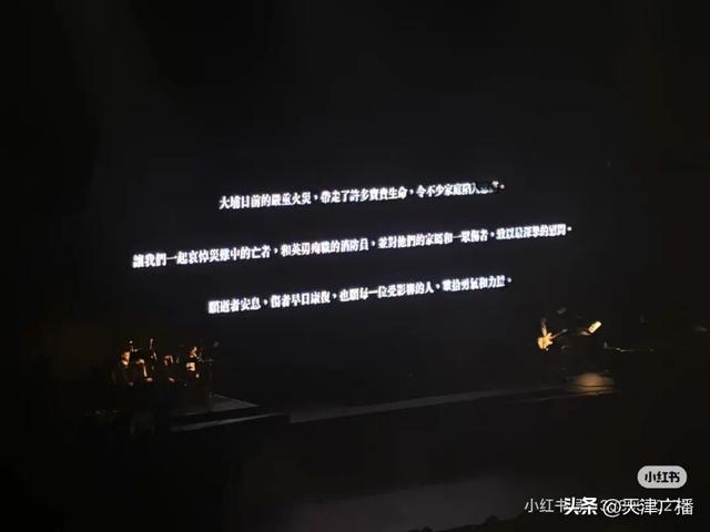 现场大屏幕上示意为这次意外的罹难者致哀,并写道:“怀念,将会长留心中;此刻相聚的星光,化作前行的力量。感恩今晚彼此同在,以温暖和勇气,照亮大家的前路。生命无常,但我们选择——好好活,好好唱,好好珍惜。”
