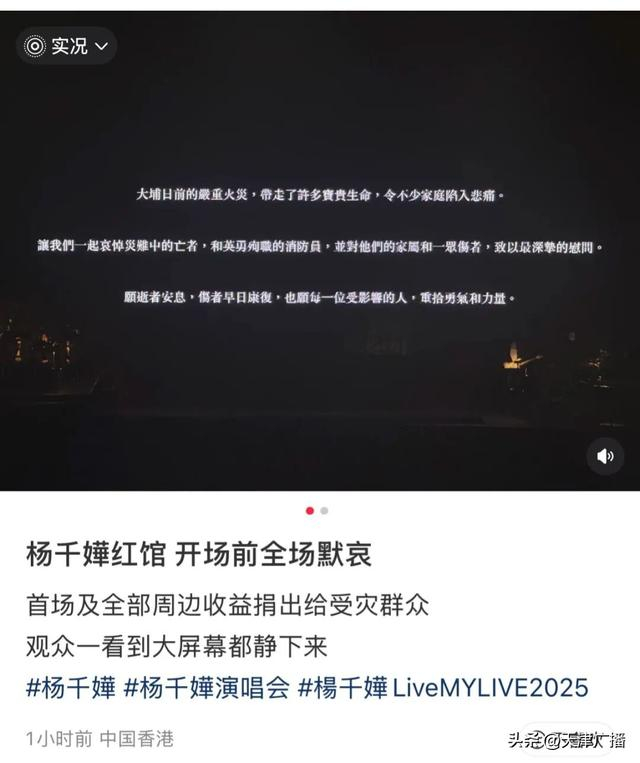 昨日香港宏福苑火灾事故,我们与全港市民一样深感沉重悲痛。在这艰难时刻,《杨千嬅Live MY LIVE 2025演唱会》望以实际行动回应社会需要,共同携手渡过难关。