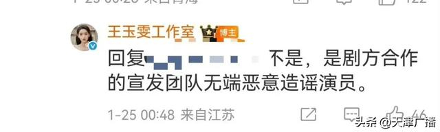 据悉,剧方合作的宣发团队在未接触王玉雯的情况下,向合作平台散布虚假信息,谎称艺人“自行策划并发布宣传物料”。当晚,工作室回应网友称:“剧方合作团队无端恶意造谣演员。”