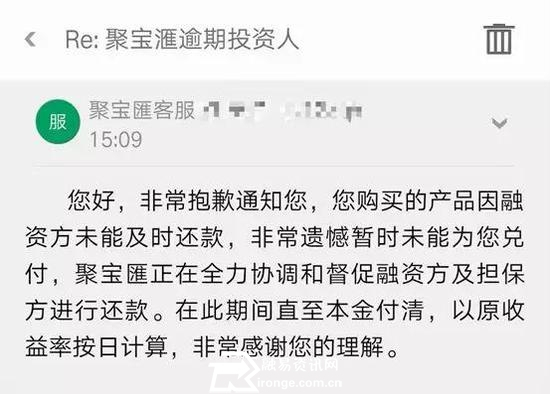 “海航系”的资金困局仍然没有得到完全化解,树欲静而风不止。 9月13日,海航创新被曝出3亿元信托借款逾期。随后,公司发布公告承认逾期的事实,同时称正与湖南信托协商妥善的解决办法。 巧合的是,就在9月11日,由于投资的“海航系”公司互金平台“聚宝汇”出现产品逾期,数十人在位于北京三元桥的海航大厦楼下耗至深夜。 “海航系”再曝借款逾期 9月13日,据湖南省信托有限责任公司(下称“湖南信托”)官网显示,其设计并推出的“湖南信托-海航创新项目集合资金信托计划”涉及3亿元借款逾期。 截图来源:湖南信托官网 据了解,该信托计划成立于2016年9月8日,资金用于向海航创新(海南)股份有限公司(现更名为海航创新股份有限公司,下称“海航创新”)发放流动资金贷款,贷款规模人民币3亿元,贷款期限24个月,由海航旅游集团有限公司(下称“海航旅游集团”)提供连带责任保证担保。 值得注意的是,按照《信托贷款合同》约定,海航创新最迟应于2018年9月10日归还上述全部贷款本金。湖南信托在公告中称,贷款到期日之前,公司曾与海航创新方面进行了多次电话沟通及现场面谈,海航创新方面均表示正在协调落实还款资金。但截至公告发出时,湖南信托暂未收到相关款项,海航旅游集团亦未履行相应担保义务,海航创新、海航旅游集团均已构成实质性违约。 湖南信托还称,目前公司已委派专人前往现场催收,敦促海航创新尽快还款。同时,公司拟立即启动司法程序,申请法院冻结海航创新及海航旅游集团相关资产,包括但不限于不动产、银行账户、公司股权(含上市公司股权)等。 海航创新当日发布公告对此作出回应称,由于公司九龙山景区当前经营受到历史遗留问题影响,景区部分资产被查封影响到新的融资,目前公司流动性紧张。截至本公告日,上述信托借款已逾期。公司目前正在积极与湖南信托协商妥善的解决办法。 资料显示,海航创新前身为“茉织华”,主营业务为服装和印刷;2006年更名为“九龙山”,原控股股东李勤夫曾被称为浙江“服装大王”。2011年,在九龙山产业转型过程中,李勤夫将九龙山29.9%的股权转让给“海航系”公司,双方试图联手开发九龙山旅游项目。然而在股权过户后,双方发生了股权转让纠纷,一直延续至今。但目前尚不清楚上述股权纠纷与海航创新今日公告中提到的“历史遗留问题”是否为同一件事。 截至今日收盘,海航创新下跌5.43%,收报于2.96元/股。 不仅是海航创新,事实上“海航系”今年的日子都不怎么好过。除了旗下信托计划被媒体曝出或存在兑付困难之外,债务危机事实上也已经蔓延至互联网金融平台。 危机蔓延至互金平台 9月11日晚8时已过,北京下着雨,在三元桥附近的海航大厦门口,“聚宝汇”投资人张哥等数十人还在焦急地等待投资者代表与海航方面的谈判结果。 聚宝汇是海航集团旗下的互联网金融平台,于2014年7月正式上线运营。“投资”业务中包括收益型保险、基金投资、固定收益类等产品。 “今天就没打算去住酒店,就在这大厦底下睡吧。”张哥等人已经在海航大厦楼下耗了一天,仍旧没有拿到答复。当天,距离他投资的产品出现逾期已经过去一个多月。 “多的投了上百万,赶过来的都是急需用钱的。”张哥和来自各地的聚宝汇投资者来到海航大厦,他们希望能够当面跟聚宝汇方面谈谈产品逾期兑付的事情。 “9月初他们就发没有兑付的邮件,客服那边一直说不晚于18个月内兑付。”投资者李姐凑上来告诉融易资讯网。她买的产品7月份就到期了,目前状态是部分兑付。 另一位不愿具名的“海聚宝”项目投资人向野马财经(微信公号:ymcj8686)表示,“月初发了邮件通知,拨打客服的说法是不晚于18个月完成兑付。对方称,海航集团提供所需资金保障,在资金充裕的情况下进行提前兑付”。 逾期的是“海聚宝”项目,利息兑付都正常,然而到期后迟迟未兑付本金。 图为聚宝汇向投资人发来的短信 资料显示,“海聚宝”是聚宝汇平台推出的产品。“海聚宝”项目融资主体多为海航集团的关联企业。也就是资金最终流向相关的公司。 一位投资人向野马财经(微信公号:ymcj8686)表示,“他们所购买的海航集团关联或实际控制企业的融资项目产品,融资方来完成兑付。投资人出示的邮件信息显示,聚宝汇方面已经在协调融资方和担保方进行还款。” 流动性困难何时破局 事实上,除了上述信托借款、互金产品逾期之外,今年以来“海航系”公司曾多次出现兑付困难。 早在2月6日,便有媒体报道海航一笔总计17亿元的信托计划很可能无法按期兑付。 该笔贷款名为“中信·海航地产贷款集合资金信托计划二期”,于2017年2月16日成立。该计划累计向海航地产集团有限公司(简称“海航地产”)发放贷款16.997亿元,资金用于海航日月广场和海航首府项目建设,信托期限为12个月,到今年2月16日起陆续到期。 报道称,由于目前“海航系”企业整体现金流紧张,该项目贷款本金以及信托收益或无法按期兑付。 针对上述报道,2月7日,海航基础发布澄清公告称,“经核查,公司认为上述媒体报道内容与公司实际情况不符。截至公告披露日,涉及贷款余额为16.997亿元人民币,信托计划项下贷款将于2018年2月16日起至2018年11月底陆续到期。目前,公司各项生产经营活动均正常开展,不存在贷款本金以及信托收益或无法按期兑付的情况”。 虽然