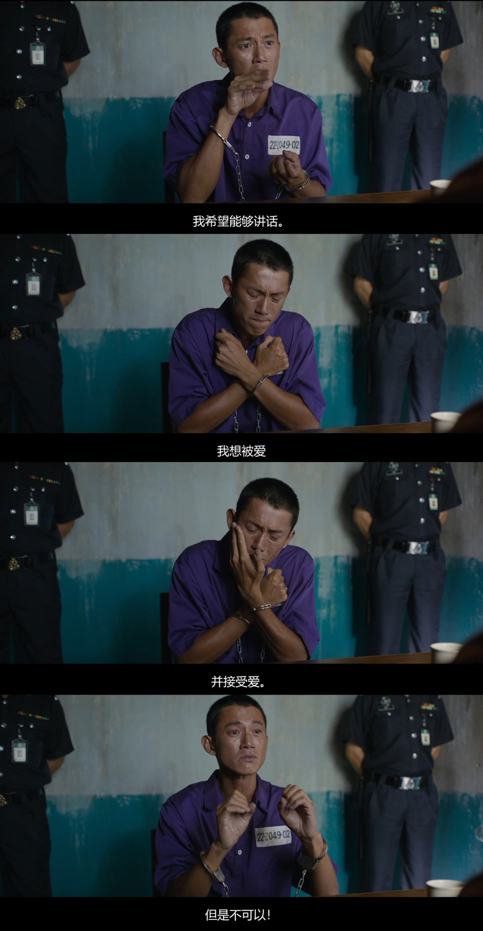 片尾那场动人的无声表演中,面对法师的劝诫,阿邦从麻木、隐忍,到委屈、悲伤,再到愤怒、绝望,吴慷仁用眼神和手势演绎出了这些层层递进的情绪。这段手语是吴慷仁在拍摄过程中一点点想出来的,他不断与导演和手语老师讨论,他认为像阿邦这样从非专业聋哑学校出来的人,需要刻意打断手语节奏,“我不希望它是让一般观众看的时候会被手语影响的一段表演。我希望让观众最直白地去感觉手语,感受人的状态。”所以最后呈现的手语,很多是半自创的,“只要观众看得懂就够了。”