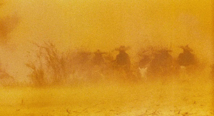 《东邪西毒》剧照(图源:豆瓣)在随后的90年代,香港武侠电影完成了这场对于传统江湖叙事的解构与转向。在《笑傲江湖之东方不败》中,徐克模糊了性别与权力的边界,瓦解着经典英雄叙事,之后又在《新龙门客栈》里,将行侠仗义的江湖圣地改写为政治权谋的修罗场。从此,侠客的行动内核不再是抽象的江湖正义,转而聚焦于身不由己的乱世中寻找个体的立足之地。到了90年代中期,王家卫通过《东邪西毒》迷离的镜头将这种解构推向高峰,侠客们被孤独地安置在时间的荒漠里,传统武侠中不可或缺的动作元素所剩殆尽。侠客们所面对的早已不是战力相当的对手,而是浓稠的困扰以及挥之不去的迷惘。江湖正从地理坐标变成承载个体困境的巨大心理隐喻。