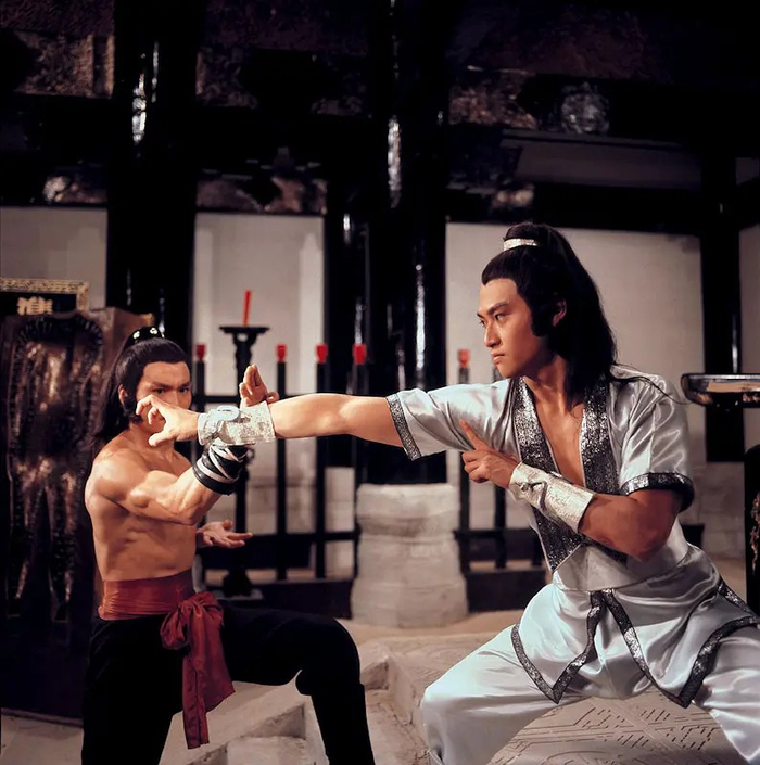 《侠女》剧照(图源:豆瓣)香港地区从此与旧武侠一拍即合。在此后的60、70年代,旧武侠步入了以邵氏兄弟为核心的鼎盛期。这一时期的灵魂人物胡金铨与张彻,如同硬币的两面,共同锻造了旧武侠的叙事范式。电影评论家石琪将胡金铨与张彻视为邵氏黄金时代的双生子,并论证二者是旧武侠时代对立统一的典范。在他眼中,尽管二者有着迥异的视觉语言及表现形式,却在精神内核上达成了深刻统一:侠客们都生活在一个善恶分明、因果必报的伦理世界中,而江湖则是黑白分明、道义至上的理想国。相似的电影内核,植根在60年代末动荡的社会情绪之上。