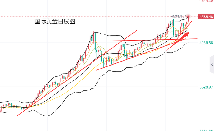 日线图上,黄金在12月底刷新历史新高后,走势遇阻单日大跌,不过金价很快止跌企稳,并在上周震荡回升,逼近历史高位,本周一金价再创历史新高,短期表现十分强势。黄金下方支撑,可以关注日内金价冲高遇阻后,主要回落企稳位置附近4560美元,以及前历史高点4550美元,黄金站稳这一区域,有机会继续冲高;黄金上方压力,主要关注4600美元整数位置的突破情况,若向上突破继续刷新历史高位,上方空间关注目前周线布林带上轨4680美元。5日均线与MACD指标金叉向上,KDJ与RSI指标金叉向上,短期技术面显示黄金有继续冲高的机会。黄金日内参考:受美联储降息预期升温与地缘紧张局势升级影响,黄金上涨再创历史新高,短期表现十分强势。操作上建议震荡思路对待,下方支撑关注4560到4550美元区域,黄金站稳这里有机会继续冲高,上方压力关注4600美元的突破情况,若向上突破,上方空间关注4680美元。