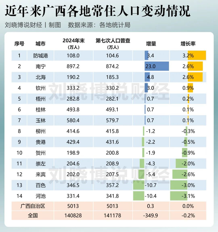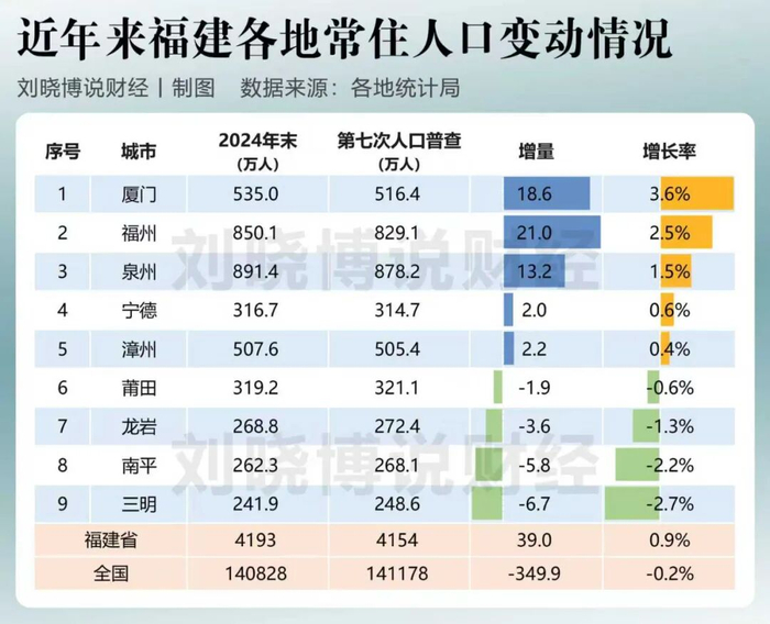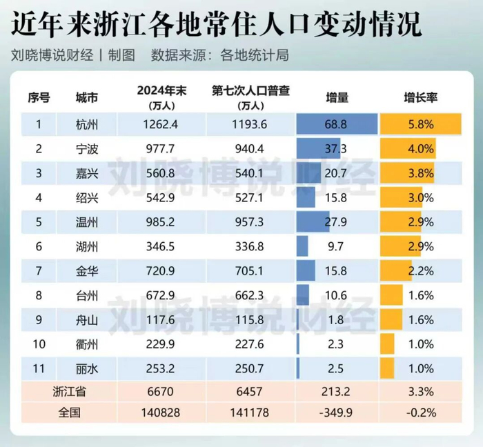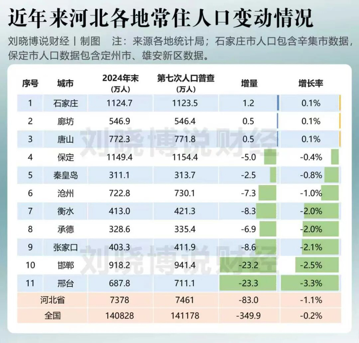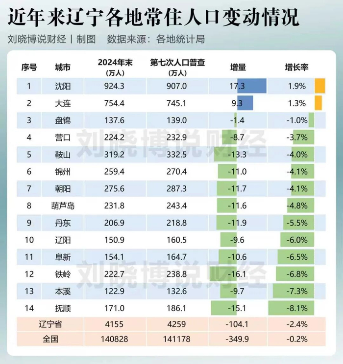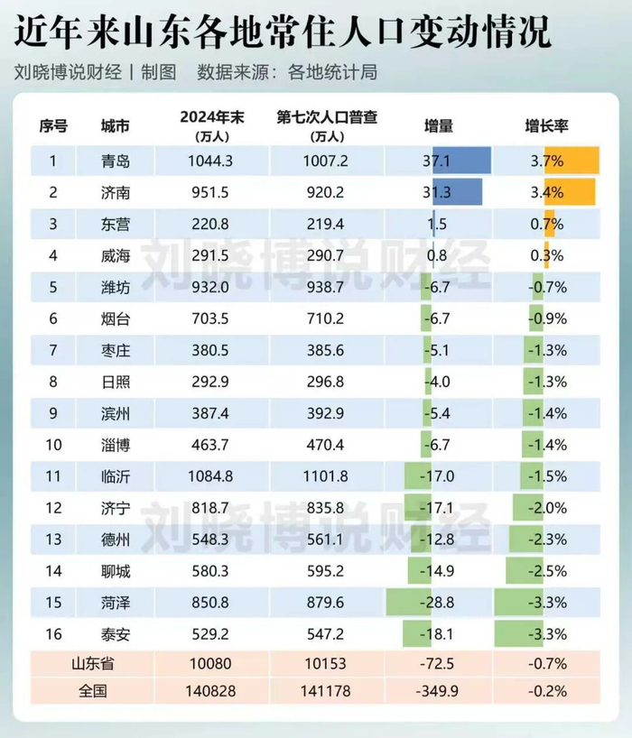 从第七次人口普查(2020年11月)到2024年底,中国(内地)沿海主要省份人口变动情况如何,哪些地市人口在增长,哪些减少了?