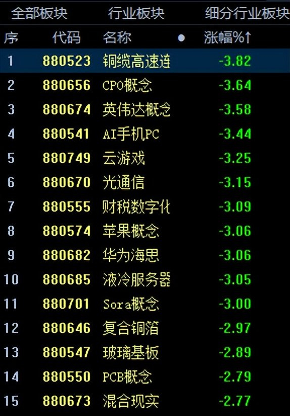 下图是A股跌幅居前的概念板块,大多跟北美算力相关。