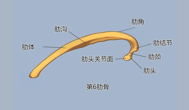 注意,这个肋字,专指胁部骨头,与肉无关。肋骨是人或脊椎动物胸壁两侧成对的、扁而弯的长形骨。如人的肋骨: