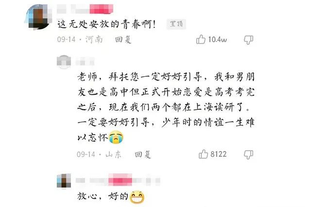 但这届的家长不是这样的,除了感慨自己再也回不去挥不去那样的情绪之外。更多的家长在意的是,女生知不知道这件事,两个人现在是不是情侣关系?