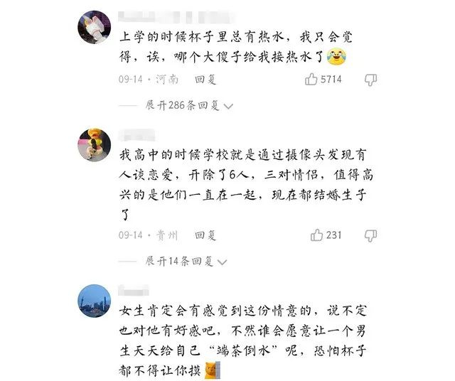 女生要守住底线,不要让自己受伤。像这种想偷偷给你打杯水,偷偷放下椅子,然后自己乖乖地回到位置上学习,更像是小时候看的校园小说里的情节。