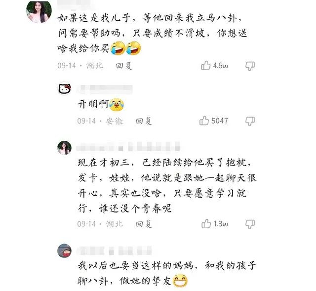 如果有什么追女同学上的烦恼,那当妈的就是出谋划策的一方。这个和刚开学的时候,那个发现自己儿子有异常的家长是一样的。