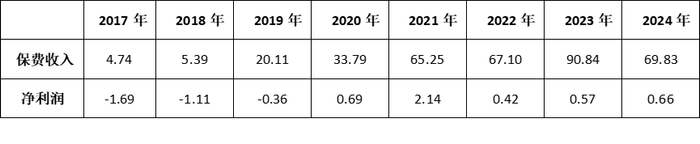 财报显示,2017年至2023年,信美人寿分别实现保费收入4.74亿元、5.39亿元、20.11亿元、33.79亿元、65.25亿元、67.10亿元、90.84亿元;净利润分别为-1.69亿元、-1.11亿元、-0.36亿元、0.69亿元、2.14亿元、0.42亿元、0.57亿元。