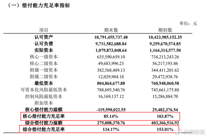 而根据《保险公司偿付能力管理规定》,保险公司偿付能力达标需满足核心偿付能力充足率不低于50%;综合偿付能力充足率不低于100%;风险综合评级在B类及以上。