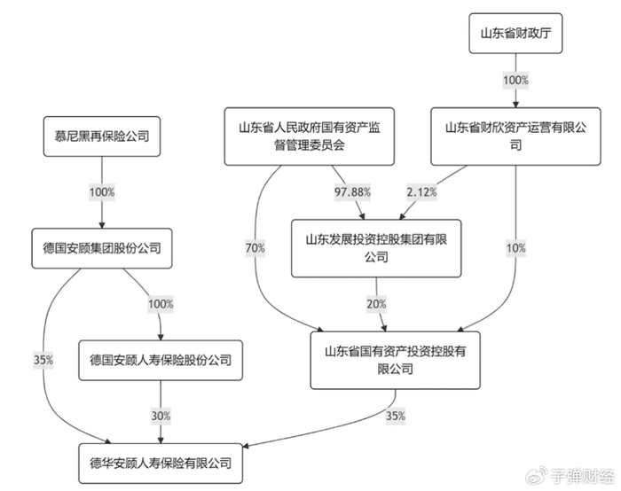 其中,山东省国有资产投资控股有限公司出资5.4075亿元,德国安顾人寿保险股份公司出资4.635亿元,德国安顾集团股份公司出资5.4075亿元。三家股东原持股比例不变,分别为35%、30%、35%。