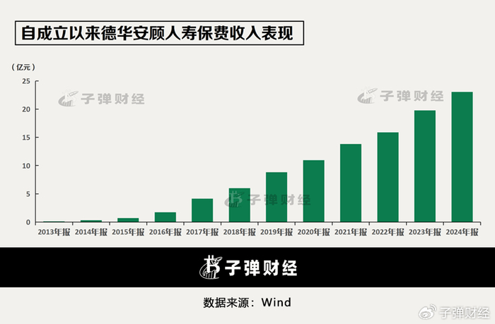 2020年,德华安顾人寿保费突破10亿元。2020年至2024年,其保险业务收入分别为:10.98亿元、13.82亿元、15.88亿元、19.77亿元及23.07亿元。