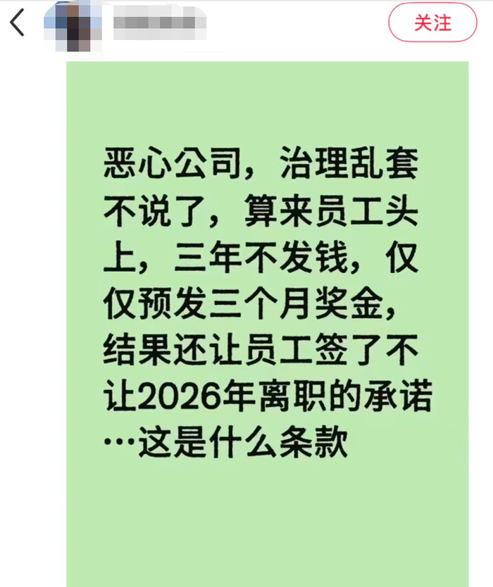 口口声声说为员工着想,可实际发的不过是三个月税前固定工资,却要员工拿2026年一整年的职场自由来换。这哪里是预发奖金,分明是拿点蝇头小利,给员工套上了一层密不透风的枷锁。