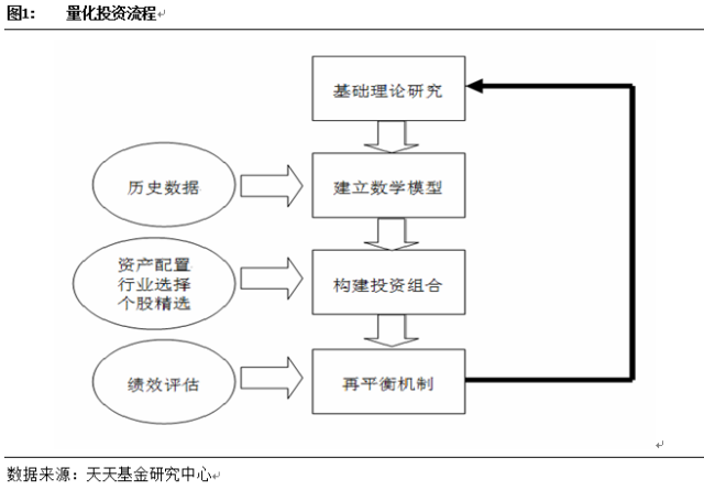 其中“量化”投资是区别于传统“定性”投资而言的。量化投资通过借助统计学、数学方法,运用计算机从海量历史数据中寻找能够带来超额收益的多种“大概率”策略,并纪律严明地按照这些策略所构建的数量化模型来指导投资,力求取得稳定的、可持续的、高于平均的超额回报,其本质是定性投资的数量化实践。由此可见,所有采用量化投资策略的产品(包括普通公募基金、对冲基金等等)都可以纳入量化基金的范畴。量化投资的最大的特点是强调纪律性,即可以克服投资者主观情绪的影响。