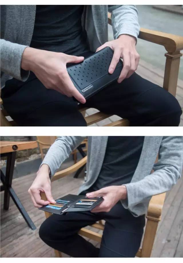 钱包是坚韧的超纤皮与柔软布料结合制成,皮革抵挡了外在的尖锐物体的触碰,内在的布料也有柔软的保护,超长的尺寸更是帮你平整开每一张纸钞。