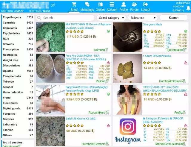 暗网商店上出售的商品多种多样,包括毒品、违禁药品、色情制品等。