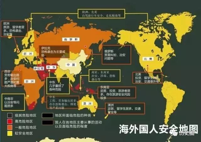 参考海外国人安全地图,战乱国家尽量不去(图中深色区域)↓↓↓↓