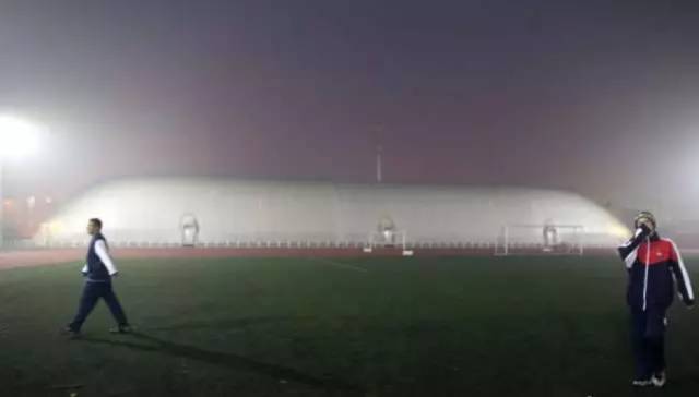 ▲ 图为北京某高校建立空气舱,保证雾霾中的学生也能健康的上体育课
