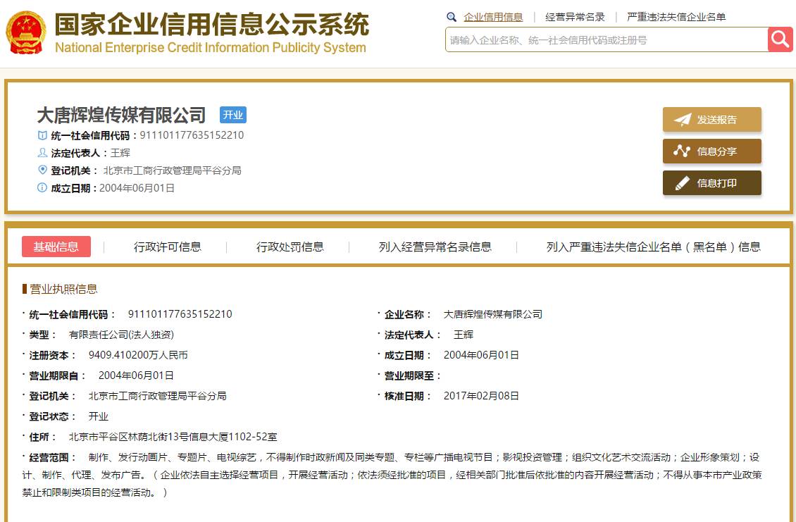 此后,北京大唐更名为大唐辉煌传媒有限公司(以下简称大唐辉煌),并由中南文化(002445.SZ)斥资10亿元全额收购。中南文化曾在2015年年报中称,公司通过对大唐辉煌等的并购,并设立文化产业基金,成功实现从单一的工业金属管件及压力容器制造向先进生产制造与文化传媒产业并行的双主业的转变。