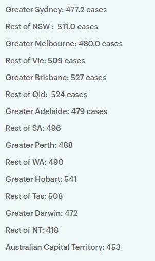 不难看出,南澳大利亚州白血病病例最高,达尔文有最多的肺癌患者,霍巴特最多的淋巴瘤病例,昆士兰黑素瘤病例最多,西澳大多数胰腺癌病例最多。