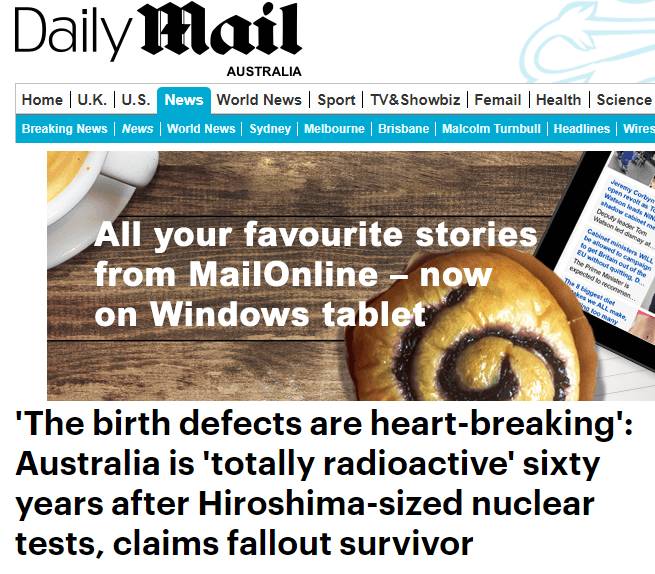 DailyMail:澳大利亚在核试验后60年仍然具有“完全放射性”,仍有原子尘残留。