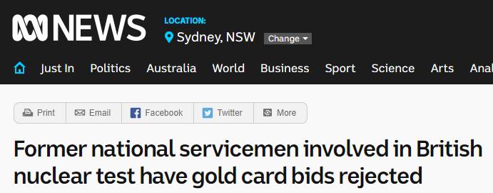 NEWS:参与英国核试验的军人赔偿遭拒绝!