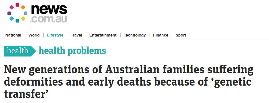 news.au:新一代的澳大利亚家庭由于“遗传转移”而遭受畸形和早逝。