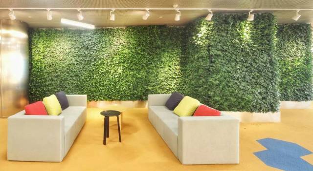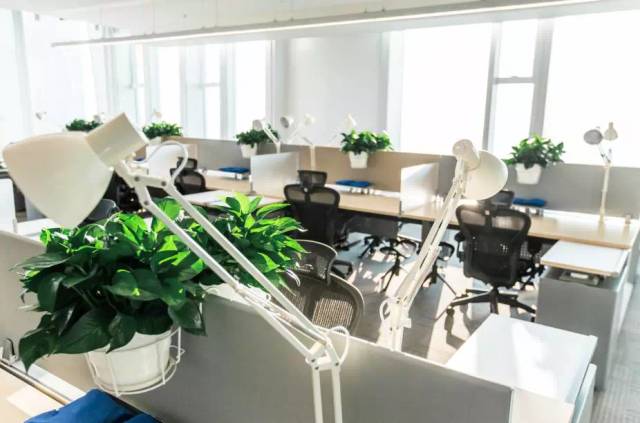 每个办公桌上都有绿化植物