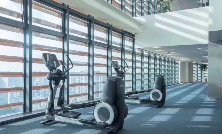 想运动?宽敞的健身房里——