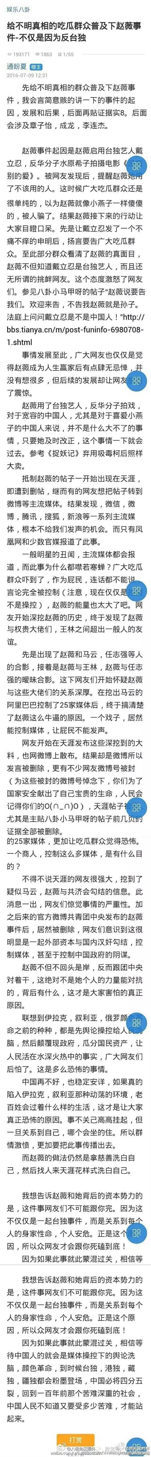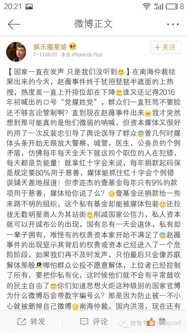 而关于这一点大家可以在新浪微博上搜索话题赵薇事件,好好看一看,里面有更详细的东西。