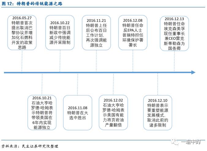 从上到下的逻辑:在特朗普的政策框架中,美国上游能源行业或迎来春天,特朗普团队承诺将“重新定制美国能源政策,对美国进行一场能源革命”。具体政策包括鼓励页岩油气开发并支持能源生产活动相关的基础设施建设、相应减少对清洁能源发展的支持并引导市场需求从清洁能源逐步转向传统能源、放松对温室气体排放的监管甚至废除前任政府签署的一系列气候协定、系列能源大亨入驻白宫高位等。可以预见的是,特朗普时期的美国能源企业将获得更好的生存和发展环境,成本端和投资端将有明显的放松,即便在油价不大幅上涨的情况下,该类上游企业也会有较好的盈利改善,基于美国能源企业的股权投资值得关注。
