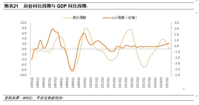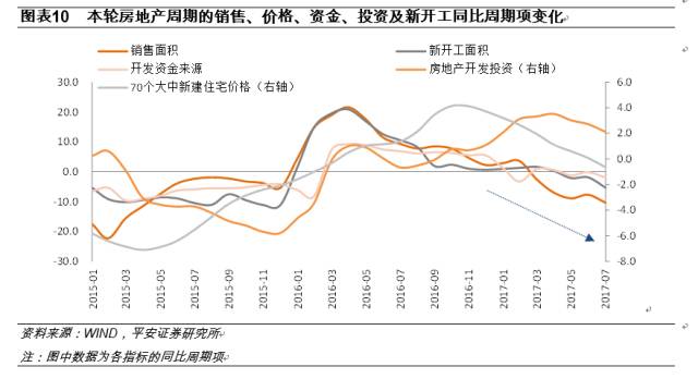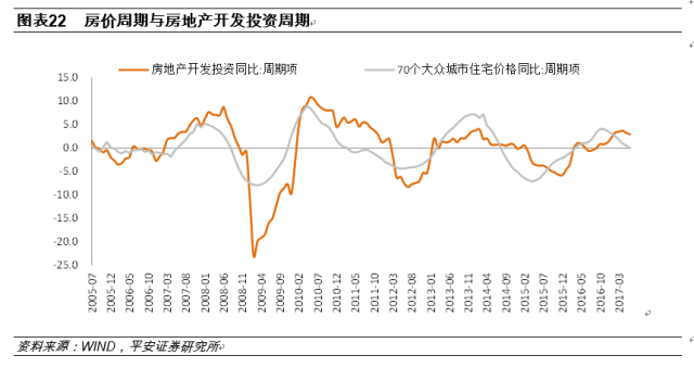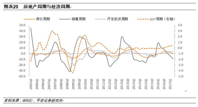 第二,本轮房地产周期大致起始于2015年二季度,按照房地产3年一周期的规律外推,并考虑本轮周期中投资相对于销售表现出的滞后效应,我们认为本轮房地产周期的下行底部可能将在2018年二、三季度出现,届时房地产下行对于宏观经济的负面影响将表现得最为充分。